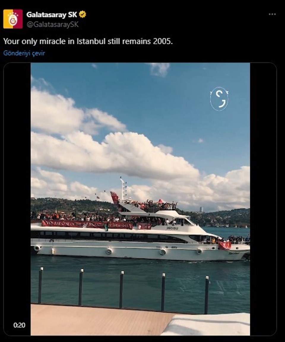 Liverpool taraftarlarının İstanbul’un mucizelerine gönderme yaptığı pankartla ilgili paylaşılan videoda, “İstanbul’daki tek mucizeniz hala 2005.” notu dikkat çekti.